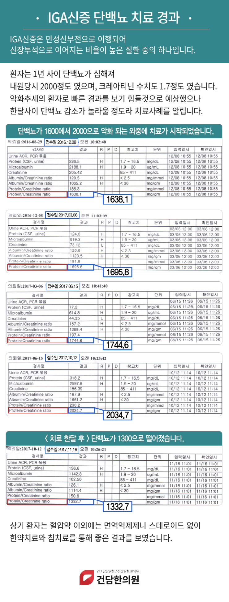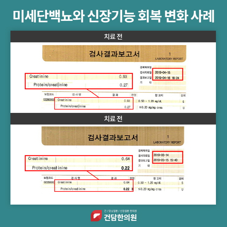 단백뇨로 고민하시는 분들은 이같은 단백뇨 때문에 아픔을 겪고 계시면, 저희 건담한의원의 다양한 치료 후 변화 사례를 확인 해주세요.